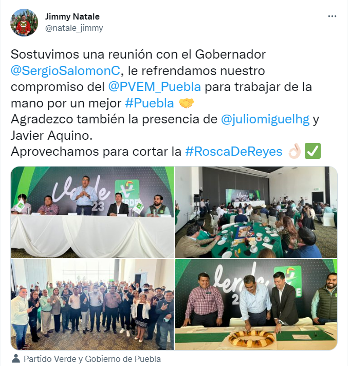 A través de sus cuentas de redes sociales oficiales, el mandatario informó sobre las diferentes reuniones partidistas que sostuvo el fin de semana, como parte de su agenda política con los partidos que en 2019 llevaron al triunfo a Miguel Barbosa.