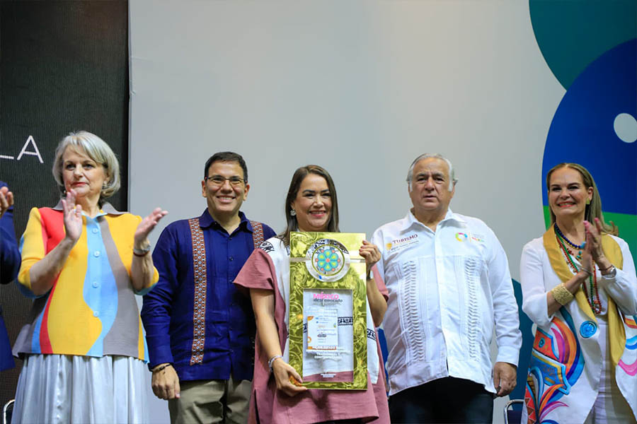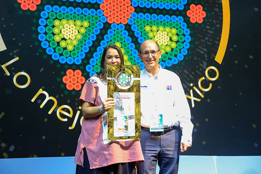 En el marco del “Tianguis Turístico 2023” y en representación del gobernador Sergio Salomón, la secretaria de Turismo, Marta Ornelas Guerrero recibió las preseas de manos del titular de Turismo federal, Miguel Torruco Marqués, mismas que confirman a Puebla como un estado con una gran riqueza gastronómica que los viajeros pueden disfrutar de la mano de experiencias únicas como las rutas del café, Chile en Nogada y mezcal, además de apreciar joyas arquitectónicas y espacios románticos.
