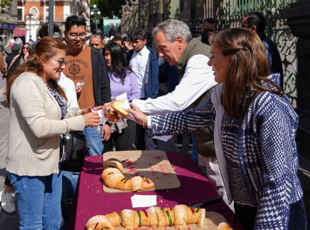 Como parte del cierre de las celebraciones navideñas y de fin de año, el presidente municipal de Puebla, Pepe Chedraui, y la presidenta del Sistema Municipal DIF (SMDIF), MariElise Budib, encabezaron la tradicional partida de Rosca de Reyes en el Zócalo de Puebla, donde convivieron con familias poblanas.