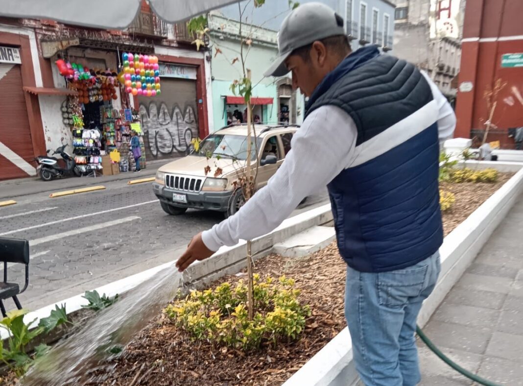 Además, se llevaron a cabo trabajos de riego y deshierbe, favoreciendo el adecuado desarrollo de las áreas verdes y garantizando un entorno más agradable para habitantes y visitantes del Centro Histórico.