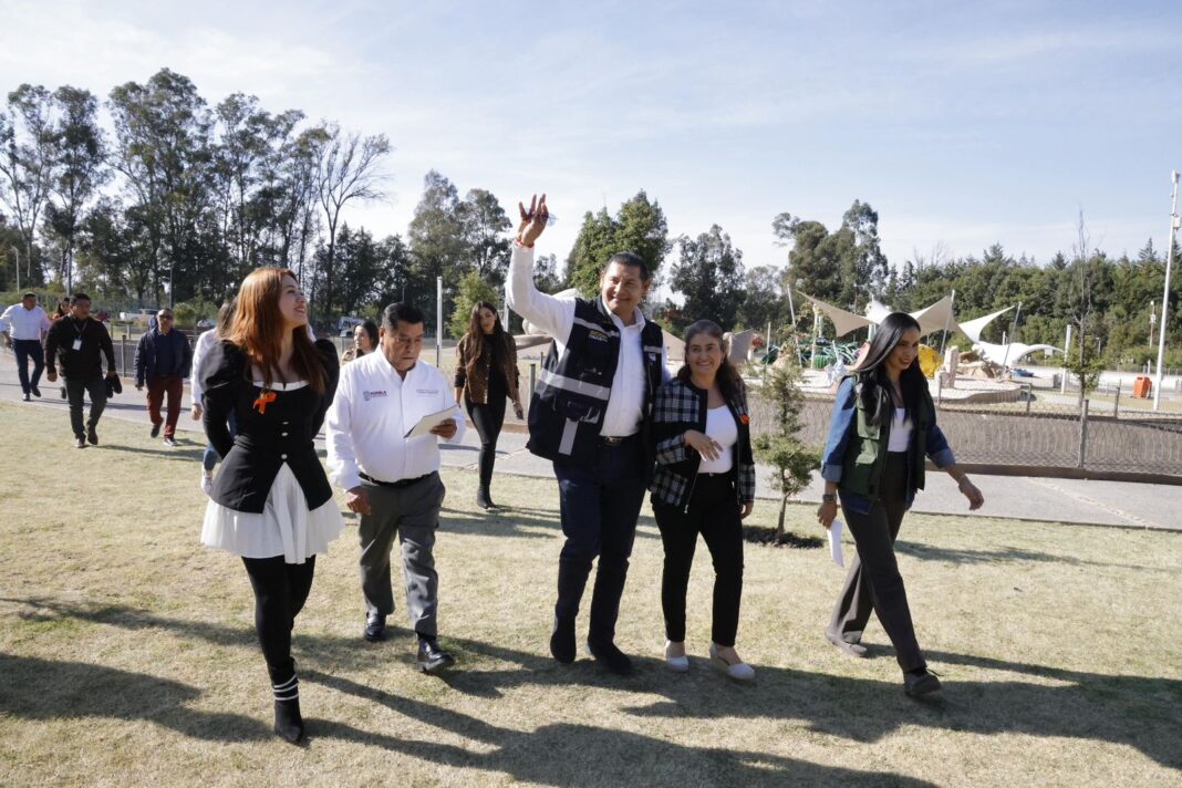 Durante un recorrido por el parque, el gobernador supervisó los detalles del proyecto acompañado por integrantes de su gabinete, como el secretario de Infraestructura, José Manuel Contreras de los Santos, la secretaria de Medio Ambiente, Rebeca Bañuelos, la titular de Ciencia y Tecnología, Celina Peña Guzmán, y la directora ejecutiva de Convenciones y Parques, Michelle Talavera.