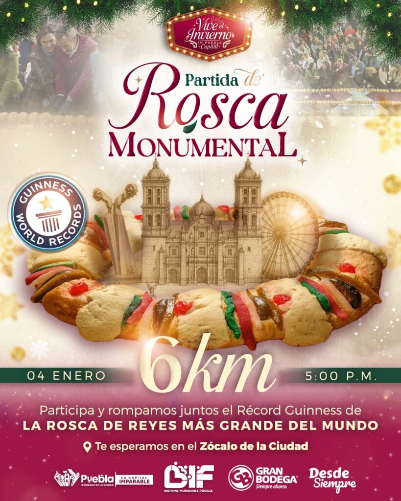 El Gobierno de la Ciudad de Puebla, a través del DIF Puebla Capital, anunció que buscará romper el Récord Guinness de la Rosca de Reyes más grande del mundo, como parte de las actividades con las que dará inicio el año 2026.