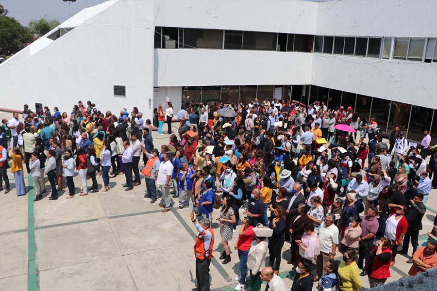Por otro lado, el Ayuntamiento de Puebla, a cargo de Eduardo Rivera Pérez, ejecutó el desalojó en un tiempo de 2 minutos 19 segundos, además, participaron 80 elementos de las direcciones de Gestión de Riesgos y de Protección Civil, así como personal de la policía y de tránsito municipal.