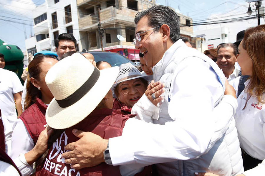 Sergio Salomón Céspedes se detuvo a tomarse fotos y a recibir las felicitaciones y los abrazos de sus paisanos tepeaquenses, también comenzó a recibir las peticiones de la gente antes de llegar a las mesas instaladas para ello.