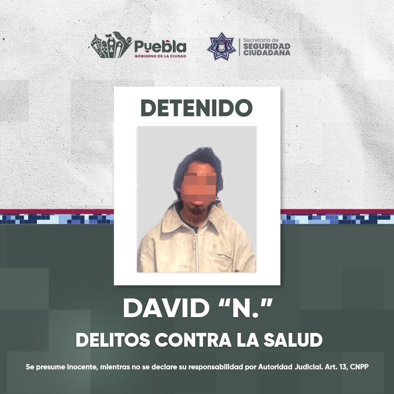 El Gobierno de la Ciudad de Puebla, encabezado por el presidente municipal Pepe Chedraui, informó que, a través de la Secretaría de Seguridad Ciudadana (SSC), fue detenido un hombre identificado como David “N”, quien se encontraba cometiendo una falta administrativa y en posesión de bolsas con aparente marihuana, por lo que fue puesto a disposición de la autoridad ministerial.