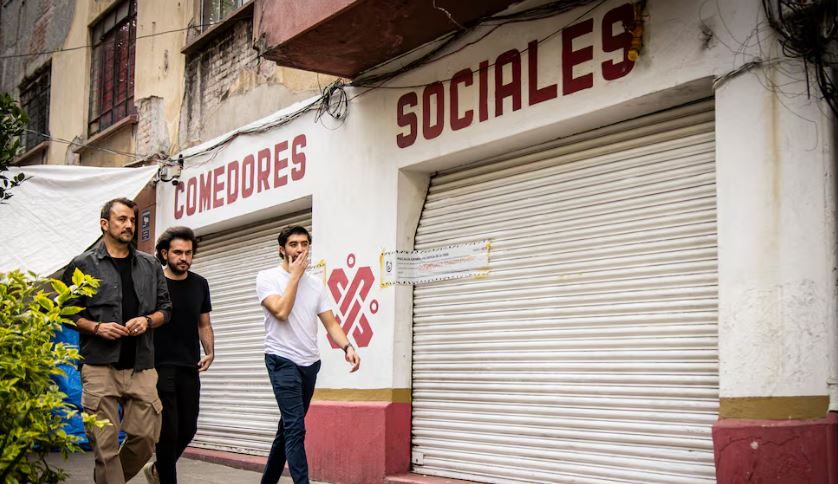 Sentada en la puerta del edificio contiguo al de la panadería, una señora se prepara un café soluble. Está calentando el agua en una cafetera eléctrica enchufada a la maraña de cables de la calle. Sobre una mesa plegable tiene los vasos de plástico y el azúcar. Detrás, una pila de mantas que han traído los vecinos para ayudarla a pasar la noche de un noviembre especialmente frío en la Ciudad de México. A María (que prefiere no dar su apellido) la echaron de su casa a finales de verano, igual que al resto de 20 familias por despojo, un delito parecido a la ocupación. Los sacaron de madrugada a la carrera. Sus cosas siguen dentro y desde entonces, se turnan para hacer guardia en la puerta. Todo el edificio está precintado por la Fiscalía de la ciudad, incluido el local del bajo: un comedor social. María recuerda que hasta que lo cerraron se amontonaban a diario largas filas gente para comer un menú completo por 10 pesos (unos 50 céntimos de dólar).