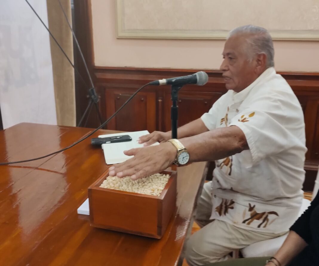 El 22 de septiembre de 2023, cuando hicimos la presentación de la Antología de Narradores del Estado de Puebla, Juan Manuel tuvo oportunidad de leer las primeras líneas de su cuento, El cuartillo, teniendo a su lado un cuartillo lleno de maíz.