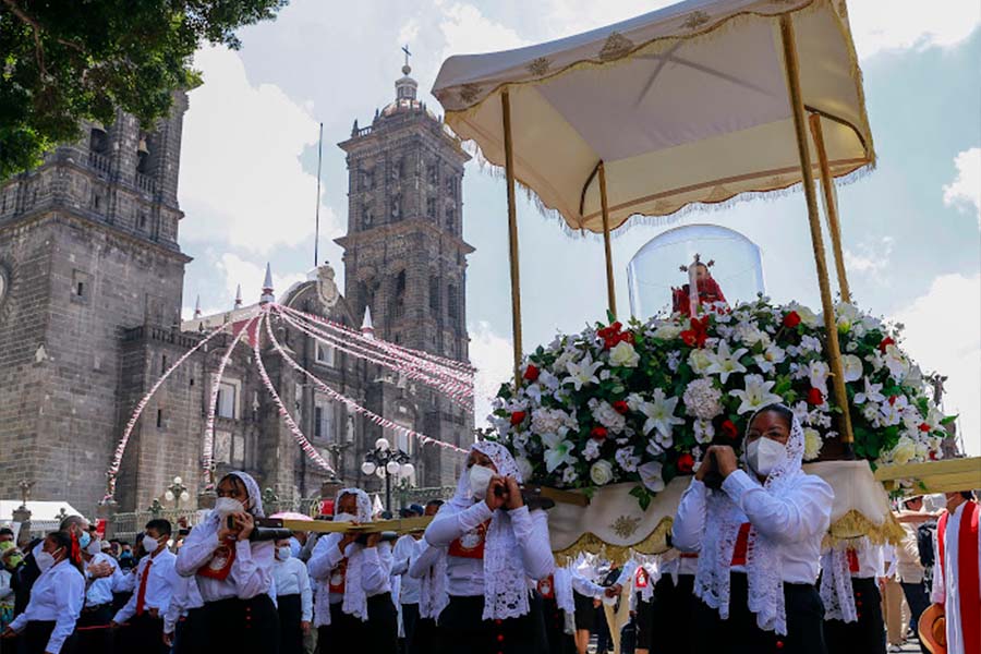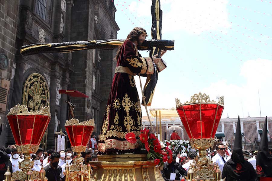 La Catedral de Puebla -el máximo centro religioso del estado- fue el sitio donde miles de feligreses se reunieron para recorrer con las cofradías las distintas calles y templos localizados en el Centro Histórico de la ciudad.