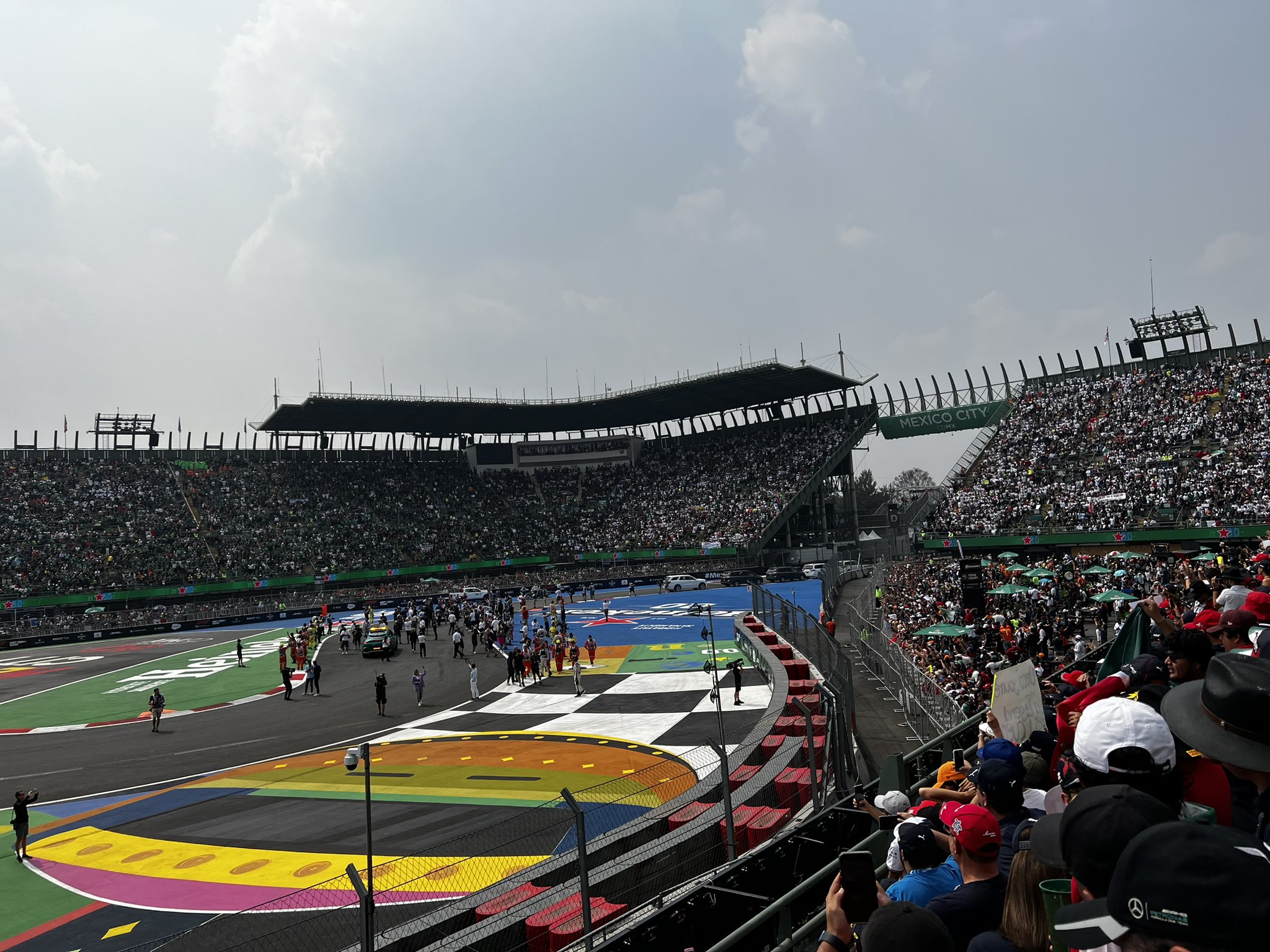 El Foro Sol de la Ciudad de México se vistió de fiesta para recibir a su piloto Sergio Checo Pérez, quien en unos minutos tratará de conquistar el podio del Gran Premio de México para orgullo de los mexicanos.