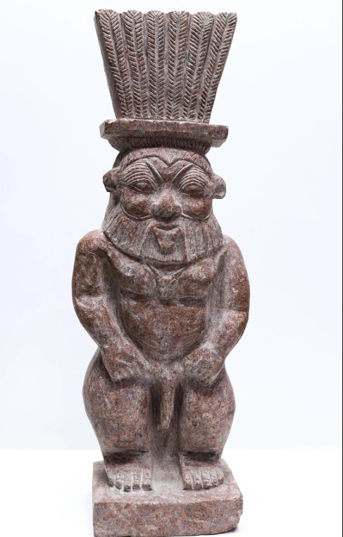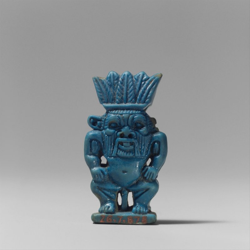 Personificado como un alegre genio enano que toca diversos instrumentos y sacando la lengua -para ahuyentar a los malos espíritus tanto con este gesto burlón como con la música-, de frondosa barba y melena, por lo general luce desnudo y con genitales de grandes proporciones, apariencia que para muchos resulta un tanto grotesca. Dado que no tiene similitud con alguna otra deidad egipcia, donde incluso ha sido considerado como un extranjero, la peculiaridad de su figura es tal, que ha sido adorado por distintas civilizaciones, entre ellas la romana, la fenicia y persa.